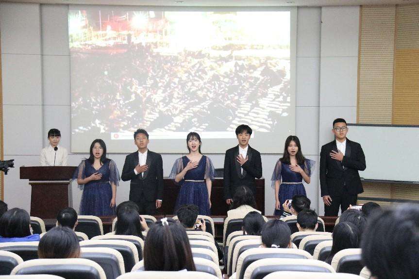 近日,新葡的京集团35222vip主题班会上,阵阵悠扬悦耳的歌声不断传出,吸引了很多同学驻足,进来旁听的同学越来越多。原来,这是“音乐里的故事”讲演团正在演绎《我和我的祖国》。