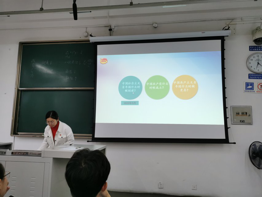 团课第二项由团支部书记冯玉为支部成员讲述了共青团的性质,随后班级同学在团支书的带领下重学团章团史,争做新时代合格团员。
