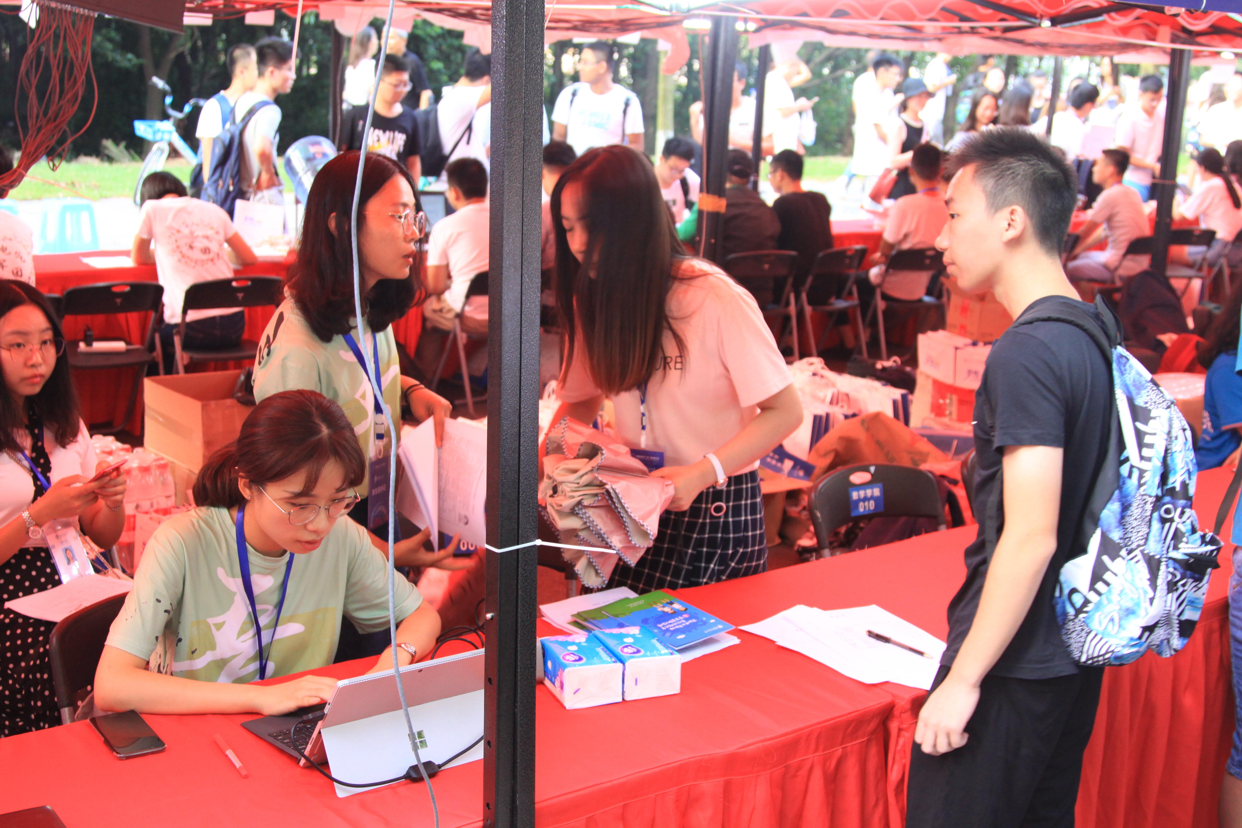 两天的迎新工作由新葡的京集团35222vip团委书记邓思然老师、研究生辅导员卢怡帆老师、18级新生辅导员钟义婷老师、和团委指导老师谢童心老师主持,新葡的京集团35222vip研究生会以及本科生四大学生组织的主席和部长担任迎新志愿者。首日上午,志愿者们即利用极高的工作效率帮助近40名研究生新同学和110位本科生新同学成功办理手续并入住学生寝室。接下来的时间内,志愿者们依旧热情不减地工作,为新同学和家长们展示了新葡的京集团35222vip良好的精神风貌。