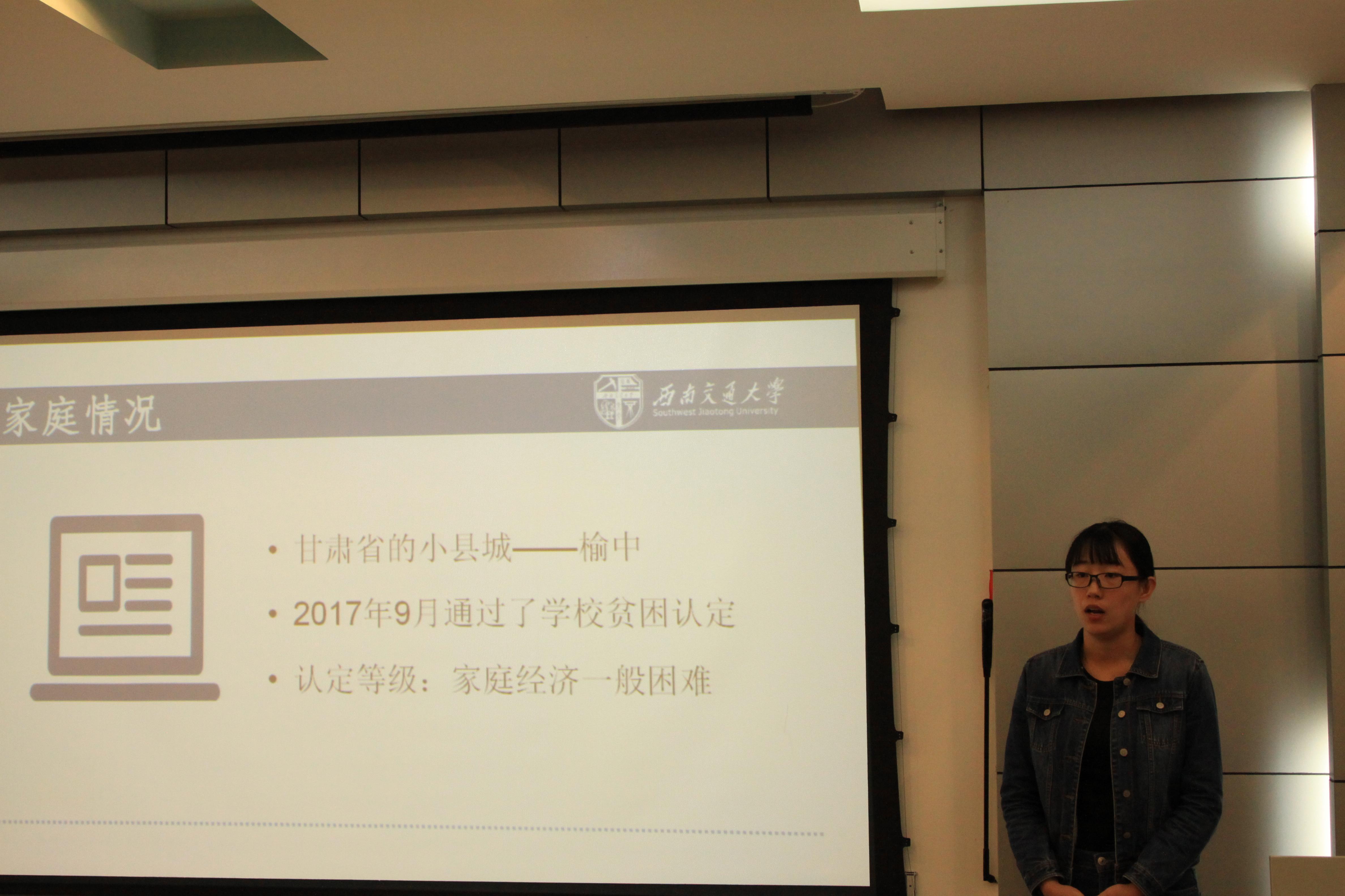 之后进行的是极客数学帮助学金的评定答辩,答辩者介绍了自己的家庭经济情况,也展示了自己在学校取得的一些优异成绩,同时表达了自己在日后继续奋发向上的决心。