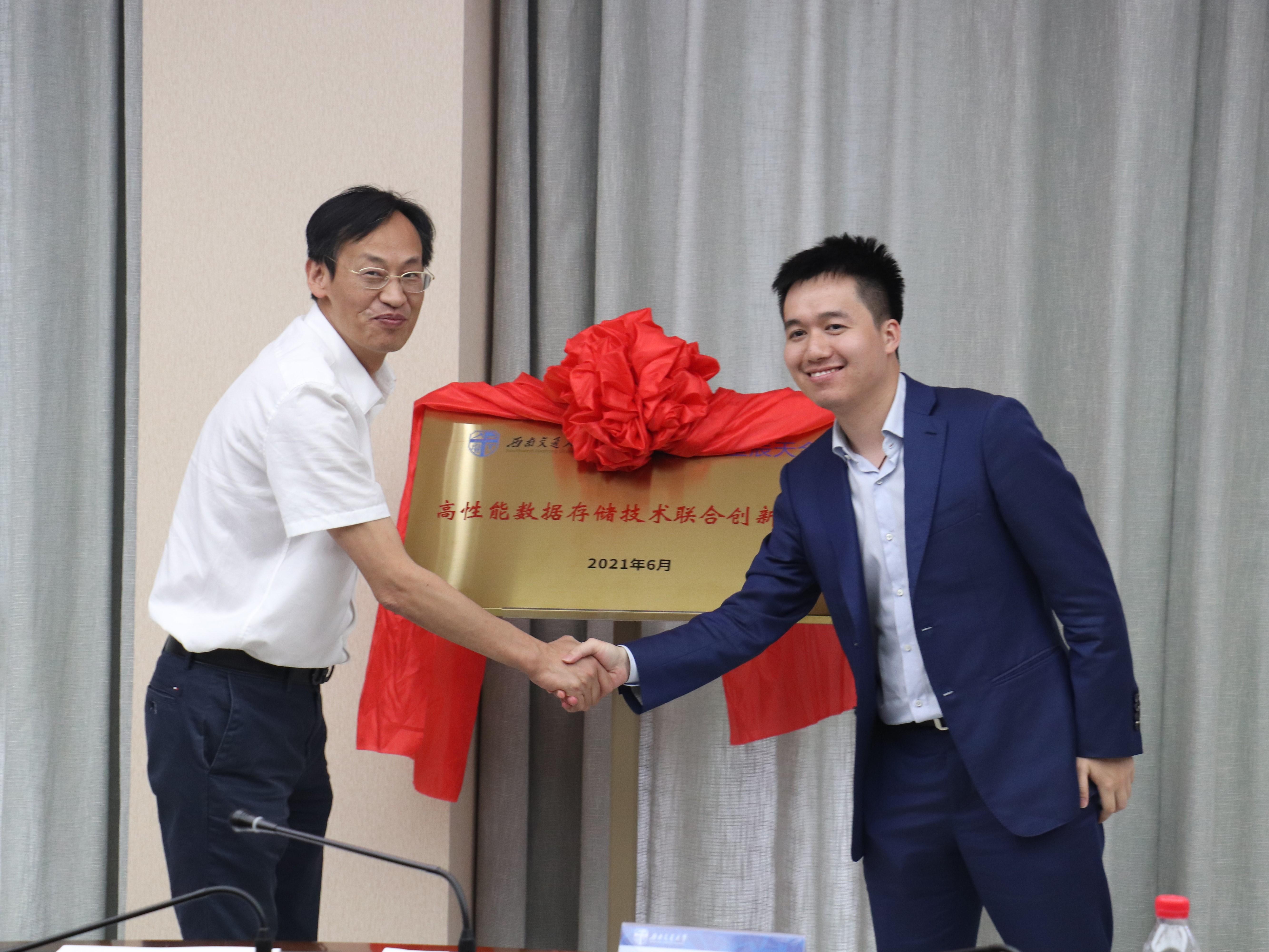 最后,新葡的京集团35222vip党委副书记桂富强与星辰天合联合创始人兼CTO王豪迈共同为数据科学与大数据技术实训基地——“高性能数据存储技术联合创新中心”揭牌。